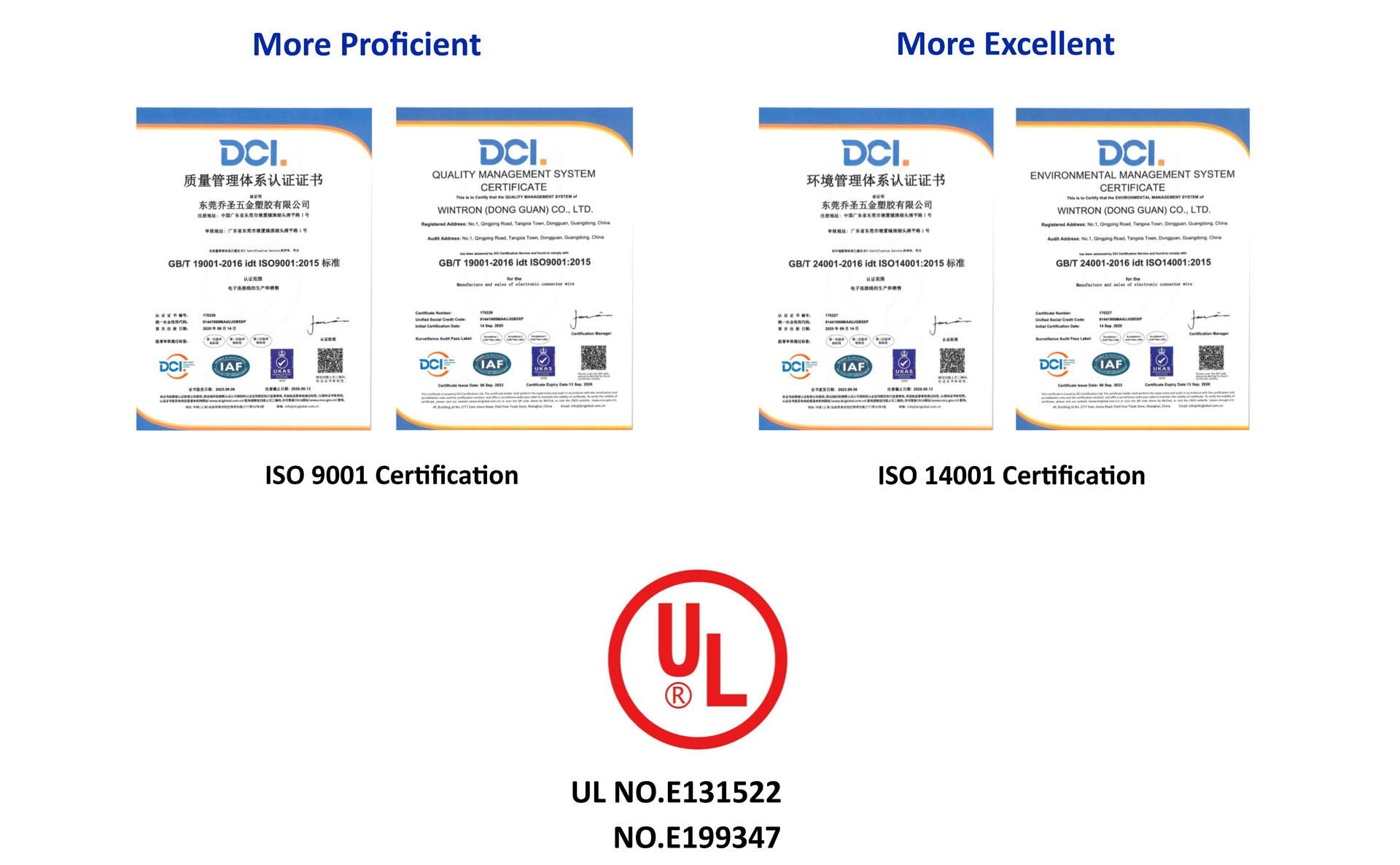 Wintron's Factories are ISO 9001:2015, ISO 14001:2015, UL certified.